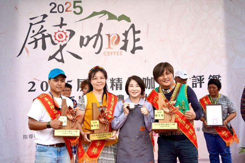 2025年屏東咖啡系列活動正式開跑,首場賽事屏東精品咖啡豆評鑑,4月18日在屏東咖啡園區技研中心辦理順利圓滿結束,19日在屏東原百貨進行頒獎典禮,隨即展開本年度屏東精品咖啡媒合會,現場超過60位國內咖啡業者及買家前來,交易情形熱絡,屏東縣長周春米出席為得獎莊園頒獎,同時歡迎全國各地咖啡業者及民眾,一同到場共襄盛舉。
