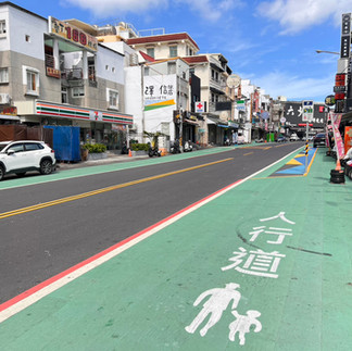 同時,縣府於墾丁路公園路口至大灣路口試辦12處臨停空間,鋪面採綠色帶狀與三色幾何圖形設計,搭配醒目告示牌,改善以往臨停無序、併排甚至占用車道的問題。臨停原則為:日間開放汽、機車短暫停放,每次限停20分鐘;夜間17:00至23:00禁止臨停,專供行人通行,以確保夜間遊憩安全。
