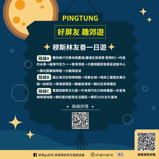 最後三日遊行程則推薦備受矚目以屏東旅遊專書主題的「屏東SOLO」特色遊程,走訪在地大街小巷景點,在體驗與探訪之中,深刻感受屏東生態之美,並更加理解人與大自然的共生共融之道。