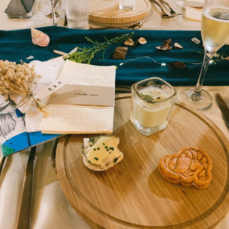 伴隨著夕陽西下,充滿海洋風情的餐桌饗宴隆重登場,Le Bon Marché 好市集手作料理餐廳的黃穎主廚與社區媽媽共同創作,運用社區盛產的龍膽石斑及午仔魚搭配各種在地食材,以「探索、記憶」來演繹富饒的地方風味,用最海派的料理迎接每一位遠道而來的貴賓。