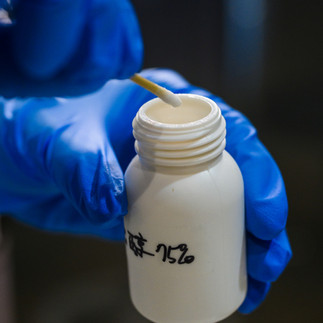他說得容易,但賴盈伃為了整張畫作上加起來不到一張郵票大小的毛屑、霉斑等污漬,花了快兩天。她得先用水、乙醇、丙酮等溶劑測試,看哪種可移除髒污又不損及顏料。這張長77.2公分、寬65公分的畫作,白藍紅黑綠等所有顏色測完已花半天。最後發現,有些污漬即使用丙酮也無法移除,僅能嘗試用刮刀刮除,但刮得掉髒污且不損及彩繪層,又是另一個功夫。
